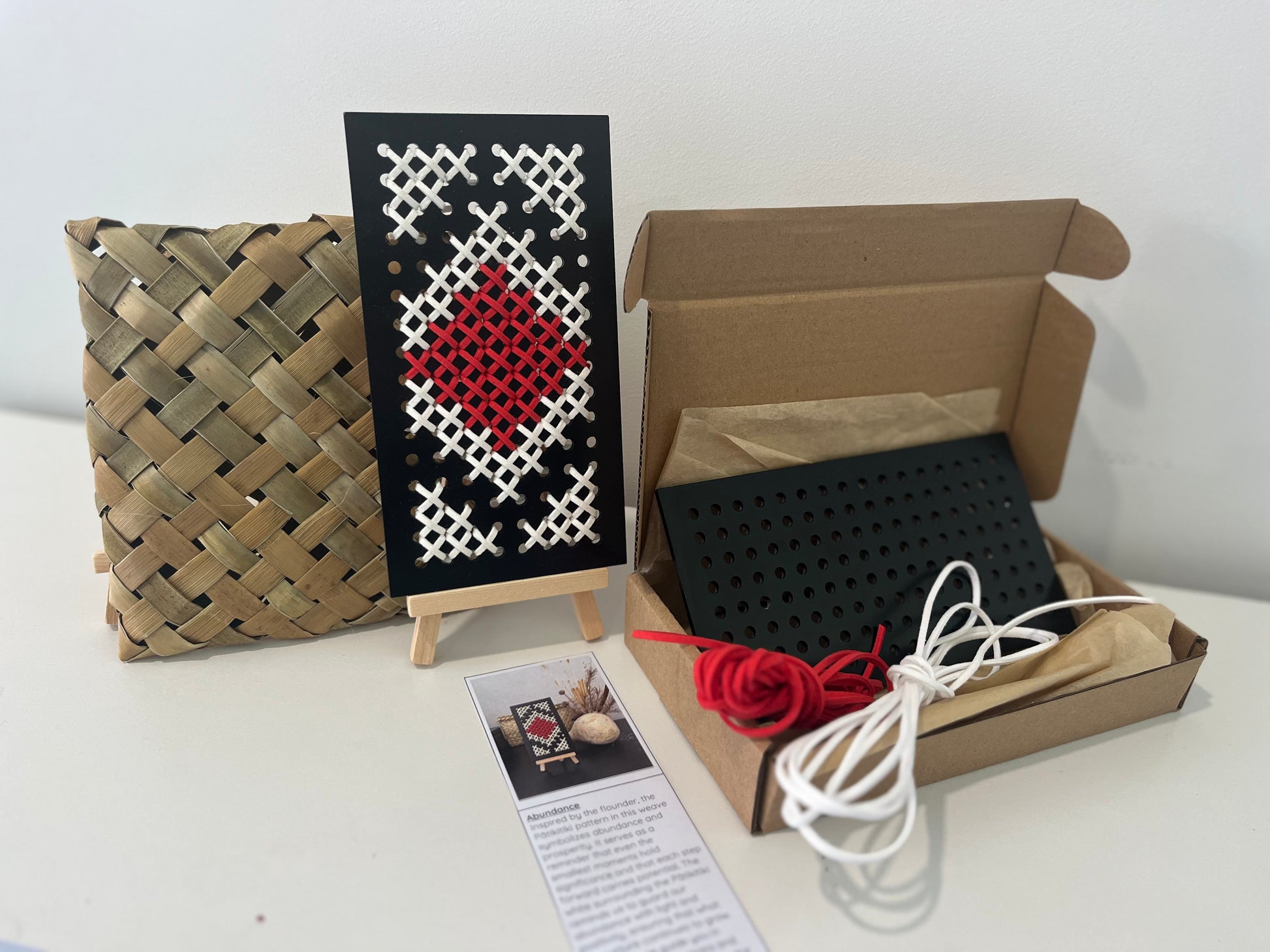 Materials: Each kete includes a beautifully crafted MDF board with a high-quality painted finish, carefully selected aho colours, a pattern to guide your weave, and the artist’s kōrero - offering inspiration for you to adapt and make your own unique creation.